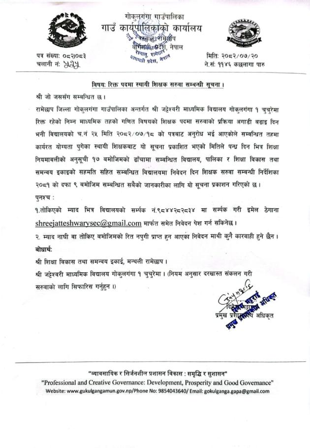 रिक्त पदमा शिक्षक सरुवा सम्बन्धी सूचना !