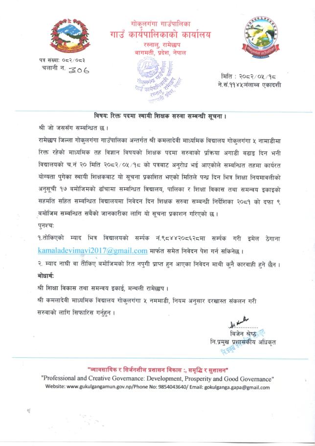 रिक्त पदमा स्थायी शिक्षक सरुवा सम्बन्धी सूचना !