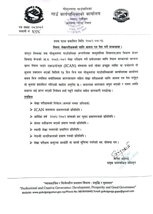 » लेखा परिक्षकको लागि आशय पत्र पेश गर्ने बारेको सूचना !