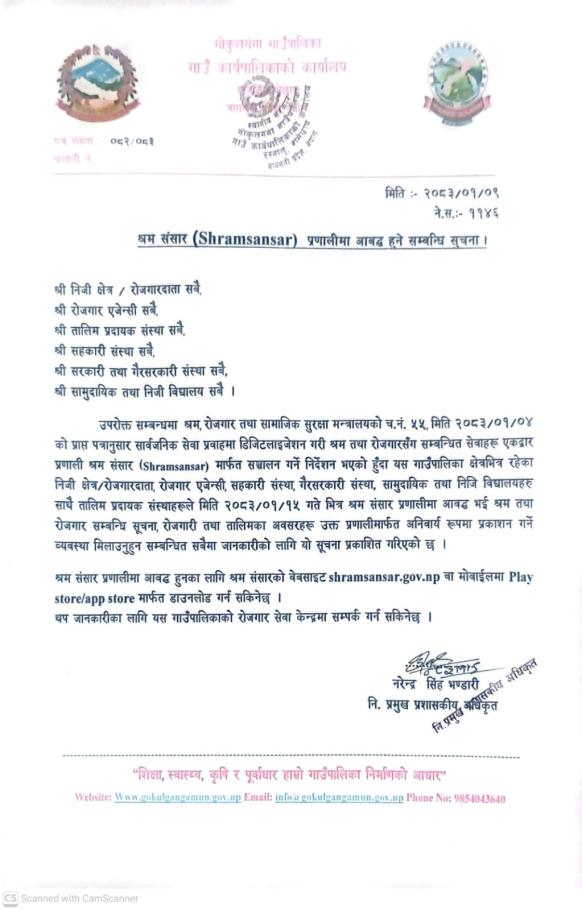 श्रम संसार (Shramsansar) प्रणाली आबद्व हुने सम्बन्धी सूचना !