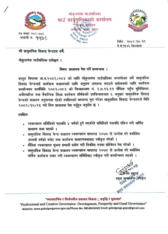 श्री सामुदायिक सिकाई केन्द्र सबै प्रस्ताब पेश गर्ने सम्बन्धमा |