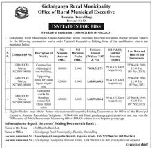 » Invitation For Bids of Janajagriti Mavi, thosey Tagam Singati Road, Banchare Namadi Fedi Khola Khimti sadak Construction